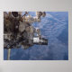 Astronauts Joseph R. Tanner (image centre) and Heidemarie M. Stefanyshyn-Piper (partially obscured, lower left), both STS-115 mission specialists, participate in the first of three sessions of extravehicular activity (EVA) as construction resumes on the International Space Station.