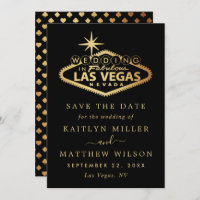 Las Vegas Wedding Poker Chip Gold Black White Invitation