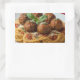 A plate of spaghetti and meatballs with parmesan cheese on top.