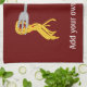 The image on this fun kitchen towel shows the classic Italian spaghetti pasta, the strands twisted onto a fork with tomato chunks. Just add your own funny slogan to personalise.