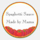 Vintage tomato art for retro canning label stickers. Text reads Spaghetti Sauce and Made by Mum, but you can customise it with your own ingredients and name, click customise it to change fonts.