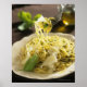 Spaghetti with basil and parmesan on plate, poster