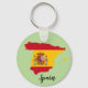 Show everyone your love for the country of Spain with this unique keychain featuring a map of Spain filled in with the colors of the Spanish flag. The font and color of the text and the background color of the product can be changed to fit your preference.