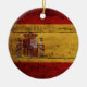 Spain Flag on Old Wood Grain Ceramic Tree Decoration