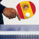 The Spanish flag is a horizontal bicolour triband with in the centre an emblem. The used colours in the flag are blue, green, red, yellow, white, black. The proportion of the Spanish flag is 2:3. The Flag of Spain was adopted in 1981. The first use of the current flag design was in 1785. The last change to the current Spanish flag design was in 1981.