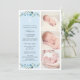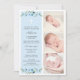Esta invitación de bautismo con flores azules en español para niños tiene espacio por 4 fotos de su bebé y presenta hermosos ramos de flores de acuarela con vegetación botánica. El frente incluye 3 fotos, una caligrafía elegante y una simple cruz cristiana y los detalles de su evento escritos en una tipografía serif vintage en un tono súper elegante de gris carbón. En la parte de atrás hay espacio para otra foto, que está enmarcada por más flores de acuarela, vegetación botánica y una cruz, así como un versículo de la biblia, que puedes cambiar a lo que prefieras. El reverso de la invitación puede enmarcarse después de su evento y guardarse como un recuerdo especial de la ocasión. Diseñado como parte de mi elegante colección Blue Powder para bebés y niños, asegúrese de explorar los otros artículos de la suite para crear un estilo elegante y coordinado para su bautizo. Si necesita ayuda para personalizar esta invitación o desea que cree elementos adicionales que coincidan, comuníquese conmigo (Dawn) en admin@albamarie.com. ¡Estaré feliz de ayudar! Para cambiar las fuentes o los colores o cambiar la posición de los cuadros de texto, desplácese más allá de estos cuadros de texto y haga clic en "Edit using design tool". Si necesita ayuda adicional para ajustar esta plantilla, aproveche el servicio gratuito de Zazzle en https://www.zazzle.com/live o comuníquese conmigo a través del sistema de mensajería de Zazzle. Tenga en cuenta que yo creo los diseños, pero Zazzle los imprime y los envía desde sus instalaciones de producción, por lo que si hay algún problema con su pedido, comuníquese con su servicio de atención al cliente al 1-888-892-9953 o https:// www.zazzle.com/about/ask. This blue, floral, multiphoto Spanish baptism invitation for boys features beautiful bouquets of watercolor flowers with botanical greenery. The front includes 3 photos, elegant calligraphy script and a simple Christian cross and your event details written in a vintage serif typography in a super chic shade of charcoal grey. On the back there is room for another photo, which is framed by more watercolor flowers, botanical greenery and a cross, as well as a bible verse, which you can change to anything you prefer. The back of the invitation could be framed after your event and kept as a special memento of the occasion. Designed as part of my stylish Blue Powder collection for babies and kids, be sure to browse the other items in the suite to create a chic, coordinated look for your christening. If you need assistance customising this invitation or would like me to create additional, matching items, please contact me (Dawn) at admin@albamarie.com. I'd be happy to help!