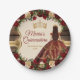 Spanish Burgundy Floral Rustic Wood Mis Quince Paper Plate