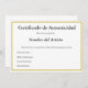 Esta es una versión en español de nuestra popular tarjeta de Certificado de Autenticidad personalizable para que los artistas la incluyan con obras de arte originales, como pinturas, dibujos, esculturas, etc. Agregue su nombre a la tarjeta y seleccione el papel mate para escribir fácilmente con un bolígrafo o marcador.
