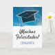 Card says Muchas Felicidades in Spanish language. It wishes congratulations for the graduate.