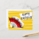 Whimsical design drawn in a retro style featuring a lacy fan souvenir from a Spanish holiday on a golden yellow and white background. A customisable design in black, white, red and golden yellow for you to personalise with your own text, images and ideas. An original digital art image.