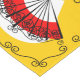 Whimsical design drawn in a retro style featuring a lacy fan souvenir from a Spanish holiday on a golden yellow striped background. A customisable design in black, white, red and yellow for you to personalise with your own text, images and ideas. An original digital art image.