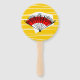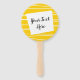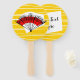 Whimsical design drawn in a retro style featuring a lacy fan souvenir from a Spanish holiday on a golden yellow striped background. A customisable design in black, white, red and yellow for you to personalise with your own text, images and ideas. An original digital art image.