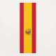 This design features the flag of Spain (known in Spanish as "España"), officially known as the Kingdom of Spain (in Spanish, "Reino de España"), which is a country in Southwestern Europe with some pockets of territory across the Strait of Gibraltar and the Atlantic Ocean. Its continental European territory is situated on the Iberian Peninsula. Moreover, the African enclaves of Ceuta, Melilla and Peñón de Vélez de la Gomera make Spain the only European country to have a physical border with an African country, in this case Morocco. The country's mainland is bordered to the south and east by the Mediterranean Sea except for a small land boundary with Gibraltar; to the north and northeast by France, Andorra, and the Bay of Biscay; and to the west and northwest by Portugal and the Atlantic Ocean respectively. The capital and largest city of Spain is Madrid. Other major cities and towns in Spain include Barcelona, Valencia, Seville (Sevilla), Zaragoza, Málaga, Murcia, Palma, Las Palmas, Bilbao, Alicante, Córdoba, Valladolid, Vigo, Gijón (Xixón), L'Hospitalet de Llobregat, Vitoria-Gasteiz, A Coruña, Elche and Granada.