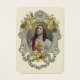 Featuring a beautiful traditional Catholic religious image of the Sacred Heart of Jesus on a vintage frame with yellow and red roses. On the back is a prayer in Spanish to the Sacred Heart. All text and fonts are in Spanish and may be modified.