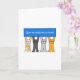 Cartoon cats standing on their back paws and holding up a blue sign that says 'Get well soon' in Spanish.