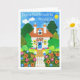 A 'Good Luck with Your Move' card with a Spanish greeting and a pretty cottage from a handpainted paper collage by Judy Adamson. The inside is left blank for your own message and the front greeting can be changed by contacting me through my store.