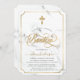 Modern, elegant Bautizo Invitation featuring white marble background , elegant gold cross, typography script Baptism in trendy gold lettering. To edit this template click customise further.