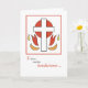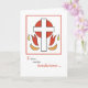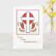 A beautiful Confirmation card in the Spanish language. It is white with red details of a cross and flames. Perfect card to send to someone who is making their Confirmation.