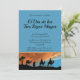Invite everyone to celebrate Three Kings Day with this elegant Three Kings Day Christmas Dinner Party invitation in Spanish. The design showcases a beautiful scene of the three magi riding camels at sunset, set against a light blue, starry sky. The invitation features a stylish combination of script calligraphy and modern block font, and the fully customisable template allows you to personalise every detail to fit your event.