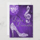 Personalised, elegant custom Sweet 16 birthday party invitations for girls. Beautiful lilac and white double sided Sweet Sixteen invites for teenage girls with a funky retro disco mirror ball, glamourous printed image rhinestone glitter, sequins, jewels sparkle high heels stiletto shoes, and glittery musical notes / music notes with sparkles on a vibrant lilac/purple lights and sparkles background. Chic, classy, cute, girly, modern invitations with trendy, fashionable colours. These groovy, stylish, sophisticated, pretty invites are decorated / printed on both sides. Perfect invitations for a dinner dance dancing event. PLEASE NOTE: All invitations on Zazzle have flat printed images. If you need any assistance customising your product please contact me through my store and I will be happy to help.