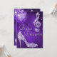 Invitaciones personalizadas y elegantes para fiestas de cumpleaños Sweet 16 para chicas. Hermosas invitaciones de doble cara Sweet Sixteen en tonos lila y blanco para adolescentes, con una divertida bola de discoteca retro, imágenes impresas glamorosas con purpurina de strass, lentejuelas, joyas que brillan, zapatos de tacón stiletto, y notas musicales brillantes/símbolos musicales con destellos sobre un fondo vibrante de luces lila/morado y destellos. Invitaciones chic, elegantes, lindas, femeninas y modernas, con colores de moda y actuales. Estas invitaciones geniales, estilizadas, sofisticadas y bonitas están decoradas/impresas en ambos lados. Invitaciones perfectas para un evento de cena y baile. NOTA: Todas las invitaciones en Zazzle tienen imágenes impresas planas. Si necesita ayuda para personalizar su producto, por favor contácteme a través de mi tienda y estaré encantado de ayudarle.