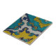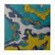 a dramatic design on a 4.25 inch tile. the motif is vintage and from spain. turquoise, yellow, blue and olive. delightful!!!
