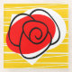 Whimsical design drawn in a retro style featuring a red rose souvenir from a Spanish holiday on a golden yellow and white striped background. A customisable design in black, white, red and golden yellow for you to personalise with your own text, images and ideas. An original digital art image.