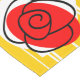 Whimsical design drawn in a retro style featuring a red rose souvenir from a Spanish holiday on a golden yellow and white striped background. A customisable design in black, white, red and golden yellow for you to personalise with your own text, images and ideas. An original digital art image.