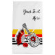Whimsical design drawn in a retro style featuring souvenirs from a Spanish holiday; a wrought iron guitar, lacy fan and red rose on a striped background. A customisable design in black, white, red and golden yellow for you to personalise with your own text, images and ideas. An original digital art image.