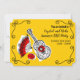 Whimsical design drawn in a retro style featuring souvenirs from a Spanish holiday; a wrought iron guitar, lacy fan and red rose. A customisable design in black, white, red and golden yellow for you to personalise with your own text, images and ideas. An original digital art image.