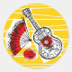Whimsical design drawn in a retro style featuring souvenirs from a Spanish holiday; a wrought iron guitar, lacy fan and red rose. A customisable design in black, white, red and golden yellow for you to personalise with your own text, images and ideas. An original digital art image created by QuirkyChic.