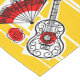 Whimsical design drawn in a retro style featuring souvenirs from a Spanish holiday; a wrought iron guitar, lacy fan and red rose. A customisable design in black, white, red and golden yellow for you to personalise with your own text, images and ideas. An original digital art image.