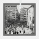 Nostalgic black and white art of the Spanish Steps in Rome, Italy filled with visitors sitting on the stairs.