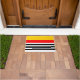 Doormat with a striped design in yellow, red, black and white. Created to co-ordinate with the Spanish Souvenirs range of home accessories and party supplies.