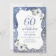 Faux sparkle silver blue glitter "60 and fabulous" script with dusty blue and white floral, elegant and stylish, great 60th birthday party invitations.