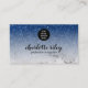 Classy and impressive logo business cards featuring a starry blue sparkling glitter ombre background faded to white marble and your logo, business name and tagline.