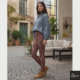 I am really pleased to say that the fabric used in these leggings has been very good. I have warn them regularly and have put them through many washes over many months and they are as good as when I first got them. I would definitely recommend this product. The printing and colours were exactly as the on-purchase pictured item and are fantastic at hiding marks from dog paws etc. A very practical colour scheme and pattern.