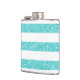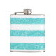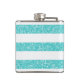 Trendy and fun Sparkle Glitter Look Stripes Flask. This design features a sparkly faux glitter look striped pattern in turquoise. Add text to this design to give it a personal touch.