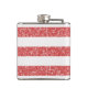Trendy and fun Sparkle Glitter Look Stripes Flask. This design features a sparkly faux glitter look striped pattern in red. Add text to this design to give it a personal touch.