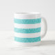 Trendy and fun Sparkle Glitter Look Stripes Jumbo Mug. This design features a sparkly faux glitter look striped pattern in turquoise. Add text to this design to give it a personal touch.