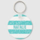 Trendy and fun Sparkle Glitter Look Stripes Keychain. This design features a sparkly faux glitter look striped pattern in turquoise. Add text to this design to give it a personal touch.