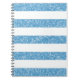 Trendy and fun Sparkle Glitter Look Stripes Notebook. This design features a sparkly faux glitter look striped pattern in blue. Add text to this design to give it a personal touch.