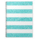 Trendy and fun Sparkle Glitter Look Stripes Notebook. This design features a sparkly faux glitter look striped pattern in turquoise. Add text to this design to give it a personal touch.