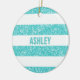 Trendy and fun Sparkle Glitter Look Stripes Ornament. This design features a sparkly faux glitter look striped pattern in turquoise. Add text to this design to give it a personal touch.