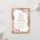 Sparkle gold glitter and pink floral 21st birthday invitation