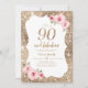 Sparkle gold glitter and pink floral 90th birthday invitation