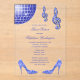 Personalized, elegant custom Sweet 16 birthday party celebration invitations for girls, with glitz and glamor. Beautiful blue Sweet Sixteen invites for teenage girls with a funky retro disco mirror ball, glamorous printed image rhinestones, glitter, sequins, bling jewels sparkle high heels stilettos shoes, and glittery musical notes / music notes.  Chic, classy, cute, girly, modern invitations in trendy, fashionable colors.  These are groovy, stylish, sophisticated, pretty, girlie invites.  Perfect invitations for a dinner dance dancing events.  PLEASE NOTE: All invitations on Zazzle have flat printed images. If you need any assistance customizing your product please contact me through my store and I will be happy to help.