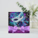 Masquerade Party Invitation. Elegant teal & purple mask & pretty diamond bow. Please Note: All flat images, they do not have real jewels or bow!