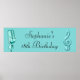 Personalised, elegant custom birthday party banner for womens' 18th Birthday or any age. Beautiful turquoise background a funky teal / turquoise retro vintage microphone, and a pretty, glamourous printed image rhinestone glitter, sequins, jewels sparkles glittery musical note / music note. Chic, classy, cute, girly, modern 18th birthday party celebration banner with trendy, fashionable teal / turquoise colours. Groovy, stylish, sophisticated, pretty retro mic music note personalised banner for girls, teens and women of any age. Perfect banner for a dinner dance dancing or Karaoke singing event. If you need any assistance customising your product please contact me through my store and I will be happy to help.