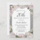 Sparkle Pink Silver Floral 20th Birthday Invitation